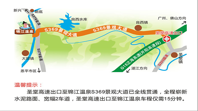 ②珠海、中山、江门方向:珠海由江珠高速转中江高速(江门方向;中山、江门由此进入)直行至湛江方向 、阳江高速、在恩平高速出口下、右转良西方向,直行即到。