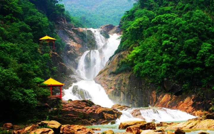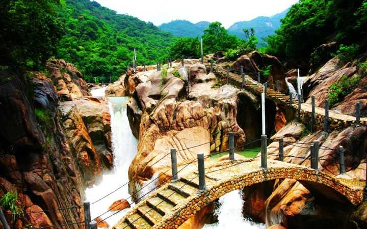 广东省龙门南昆三寨谷旅游度假风景区,生态系统完整,四面环山,旅游资源独具特色,仅森林覆盖率就达98.6%,是一个环境优美、空气清新的难得的天然大氧吧;空气中负离子含量浓度高达10万个每立方厘米,常年气候温和,雨量充沛,四季常青。潺潺流水,巍巍群山,风光秀理,山川迷人。