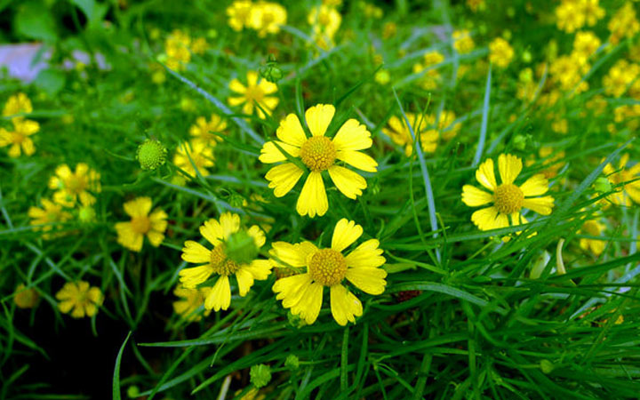 9月底—10月份孔雀草-孔雀草原本有一个俗称叫「太阳花」。它的花朵具有日出开花、日落紧闭的习性,而且以向光性方式生长,因此它的花语是-晴朗的天气,引申为:爽朗、活泼。。