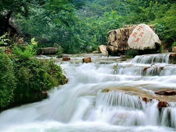 天平山最高峰海拔1671米,景区内飞瀑流泉,奇洞怪石,自然景观壮丽。千年古驿道,千年古寺天平寺,荆轲出生地,人文景观更是丰富。天平山有六大峰、五小峰,诸峰回环连接成整体连通之巨嶂,高昂险峻,直刺苍穹。区内清溪蜿蜒,水声潺潺。三步一瀑,五一步潭,青山、密林、繁花交相辉映,妙趣天成。
