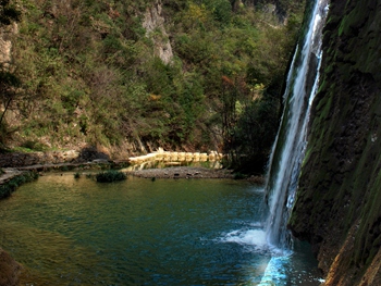 尤以瀑布特征最为显著,在不太长的地段上分布着三叠瀑、七彩瀑、雄鹰瀑等数十个瀑布。