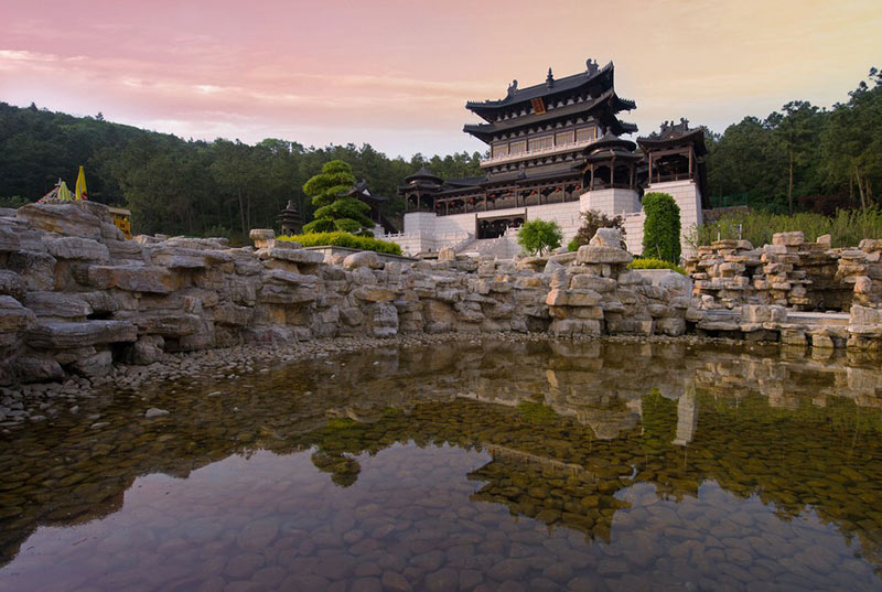 广场形似莲花,前往净心池,一路上有形象各异的假山与两旁。左右山线由高到低向两边蔓延,将我们的视觉吸在山的这边,而水滴声、水流声不觉之中入耳,更添好奇。 走近净心池,游客将欣赏到山那边风景遮不住的美,和层层水声设计之妙。