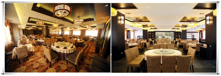度假村餐厅可同时容纳800人就餐,设有豪华气派的中式宴会厅,还有风格独特的大小包房12个。齐全多样的美味佳肴,贴切可口的私房菜让您回味无穷。装修简约、特色鲜明的零点餐厅时刻恭候您 的光临,富含温馨浪漫情调的大堂吧就在大堂二楼,泡完温泉之后,带上您的亲朋好友在此低饮浅啜,惬意尽享。