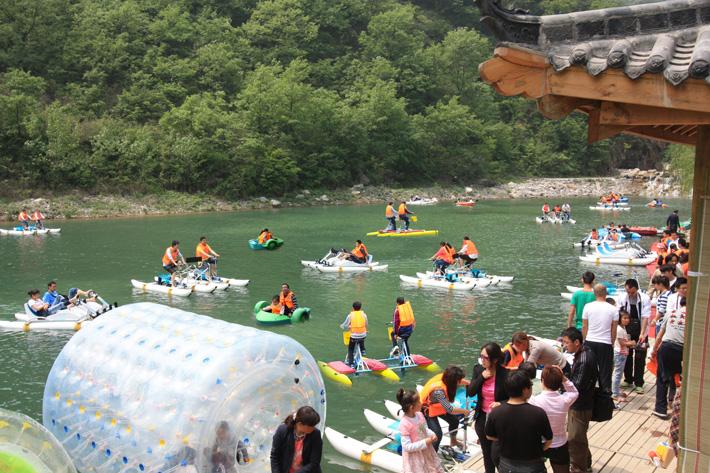 蟒河娱乐:区内可举办大型篝火晚会让熊熊的火焰燃烧我们的激情,让欢乐与歌声伴着火苗一起跳动(晚会现场可进行野味烧烤,各种美味等待您来体验);拓展训练基地——提高团队的合作能力,提升团队凝聚力,还可为孩子以及家庭提供幸福的训练营;激情漂流——好救生衣,戴好安全帽,开始激情漂流,顺水而下,水面时而宽时而窄,让您体会驾一叶小艇搏击海浪的感觉;水上乐园——水上自行车、人工造浪、大型儿童娱乐水寨等几十种惊险刺激的水上游乐项目让您健身娱乐两不误;还有各种别具当地特色的鼓书表演等让您体会当地不一样的民俗风情。
