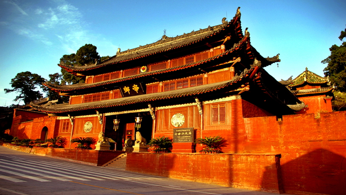 迈进帝乡大门,首先看到的是中间嵌有九龙石壁的二十四级石阶,二十四级石阶象征传统的“二十四孝”,巨型九龙石壁显示出文昌帝宫的帝王等级。石阶之上,是文昌宫正殿,又名真庆宫,始建于明代。殿中间这位头戴冕旒、身着九龙袍、慈祥和善的铸铁像,就是文昌帝君张亚子。