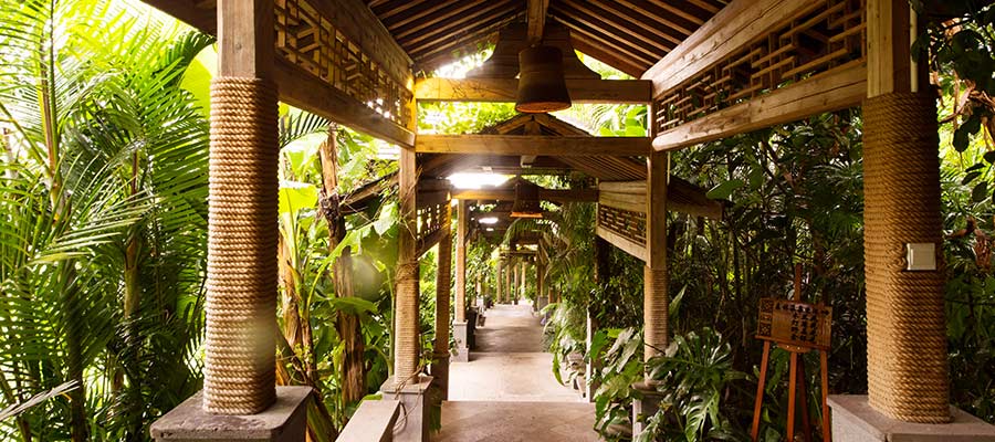 spa区内共有3个景观池、19个泡池(3个功能池、3个半露天、13个露天),1套干蒸房、2套湿蒸房、1间足疗回廊、1间谷地景观咖啡吧、1间水华茶餐厅、1套VIP汤屋、一栋美疗会所……整个区域绿化面积90%