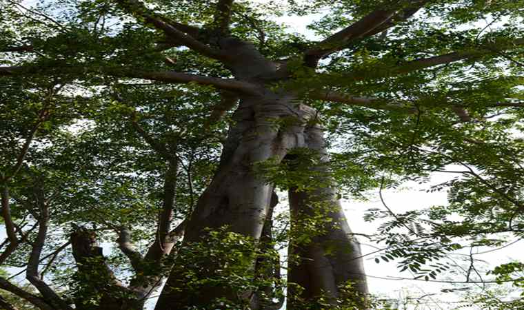 景区内有一棵高达50多米的古榕树,树幅地面面积650平方米,当地少数民族称之为“美龙卡”,翻译成汉语是“独树成林”而景区也就以此而命名。这棵古榕树已有1000多年树龄,树左右两侧的主枝上,有35条大小不等的气生根,垂直而下、相互交缠、盘于根部、扎入泥土形成根部相连的丛生状支柱根。塑造出一树多干的奇特景致,既像一道篱笆,又像一道天然的屏风,它打破了“单丝不成线,独木不成林”的俗语,成为热带雨林中的一大奇特景观。