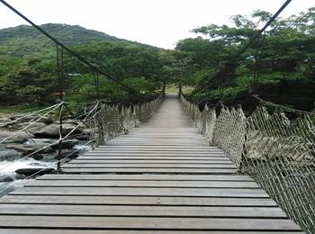 漂流全长四公里,全程约漂两个半小时。两岸山秀水碧,千姿百态,白浪翻滚,顺流而下,迭宕起伏,妙趣横生。漂流一路上寻着潺潺的溪流声找去。