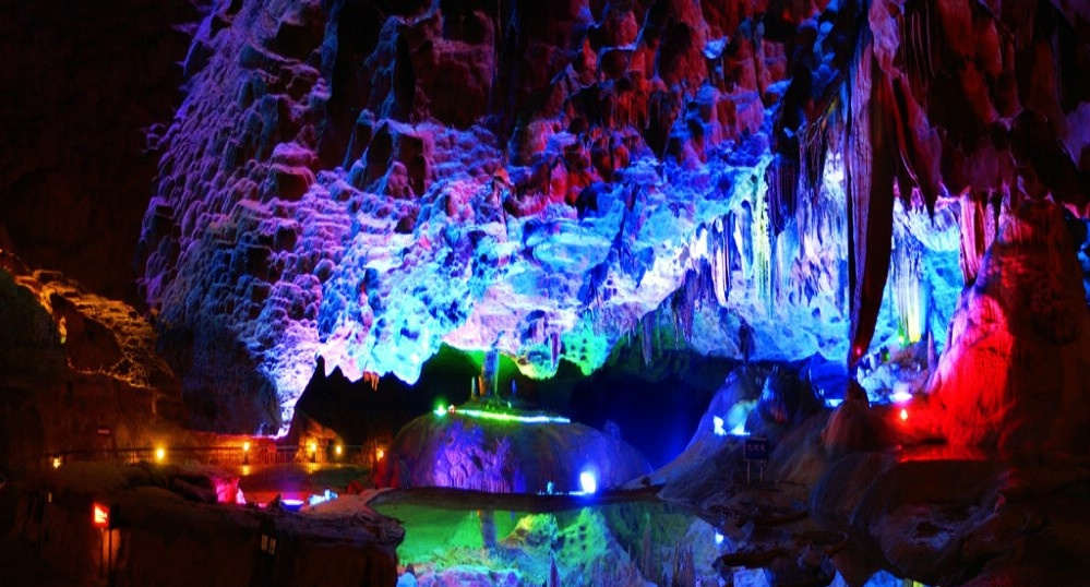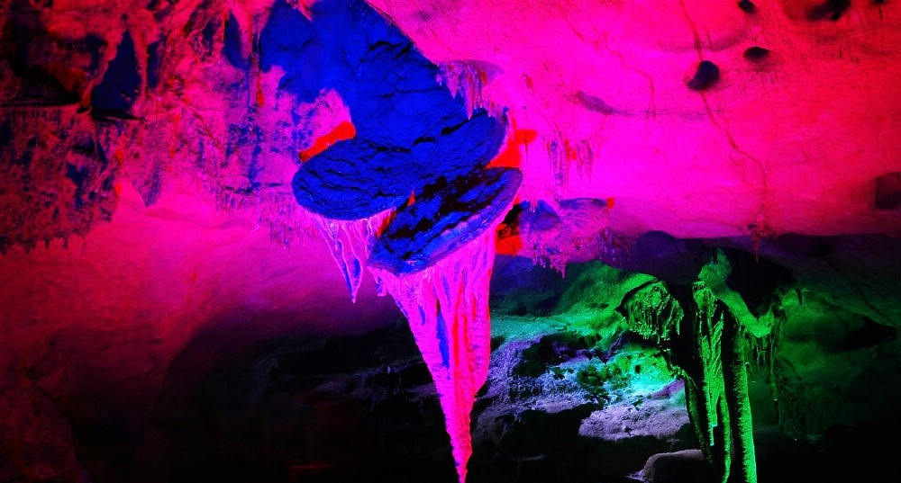 在这些山峰里有许多奇妙的溶洞,分层散布,有的穿透全山,其中最引人注目的便是穿山溶洞,洞内有数不尽的千姿百态的钟乳石,晶莹透亮的鹅管石,卷曲般的石枝,石头开花,石头长毛,以及荣获大世界基尼斯记录的“四连体石盾”,在桂林的游览溶洞中,它以独树一帜的溶洞景观,为世人瞩目。