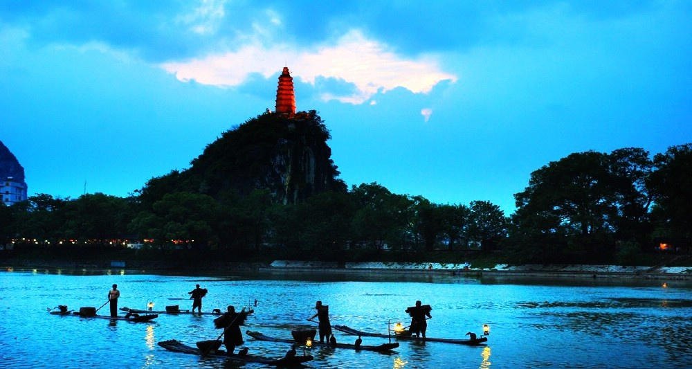 穿山景区位于桂林市区内,漓江东岸, 距桂林火车站仅10分钟车程,占地面积约53.8公顷,穿山五峰相连,北峰和西峰紧依小东江,中峰突起,东峰和南峰与塔山相望。