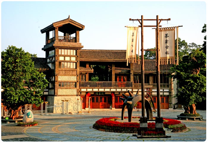 闲雅的氛围,山风柔柔地吹过,看端庄儒雅的茶艺师娴熟的茶道表演;看绿绿的茶叶在杯中沉浮;看身旁青竹摇翠,远处云雾缭绕,耳边水声敲石,诗情画意难以言说。该景点包括:半坡街、百茶屏、铁观音、古镇广场(古镇戏台)、醍醐灌顶。
